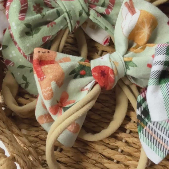 Sweet lil’ 4” cotton knot bows on nude nylon O/S headband. Mix and match these cute headpieces with an array of bibs in separate listing.