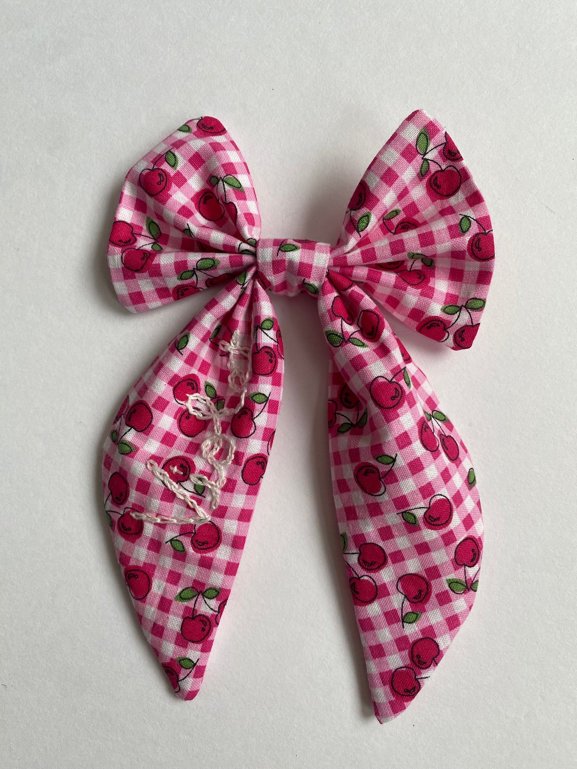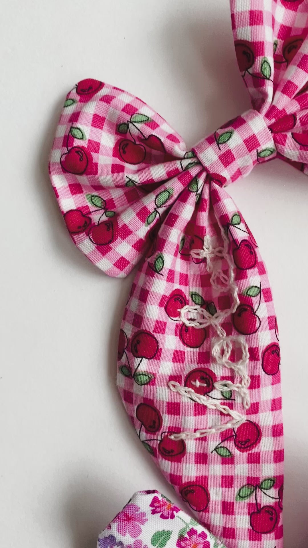 - These elegant, cotton hair bows come with hand embroidered cursive names in white reverse chain stitch design, and are suitable for girls and women.(All bows come with out heart and daisy trim. See other listing for add on options)