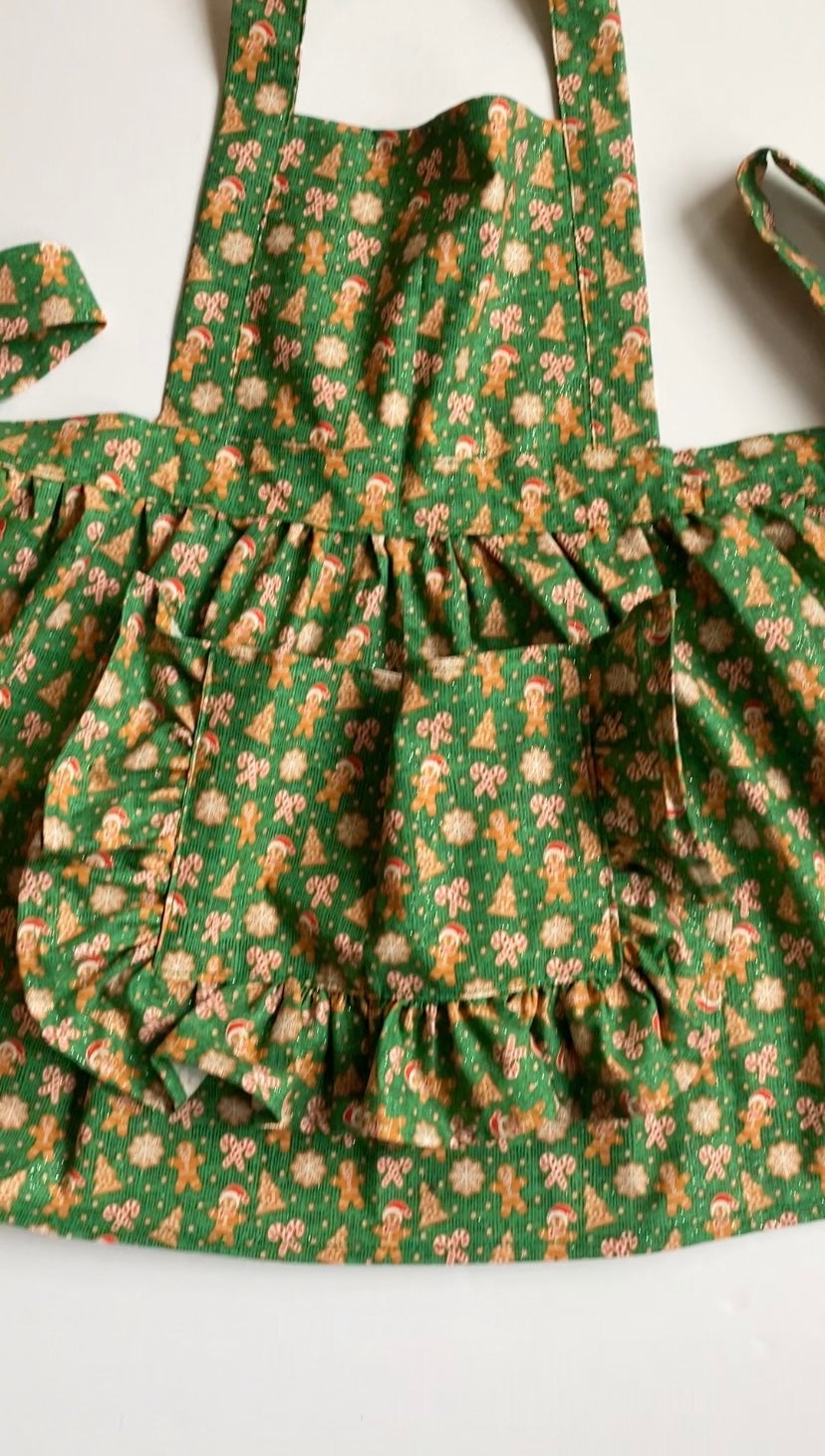 Send an email with the name as you want written on the apron in white, cursive, chain stitch hand embroidery.