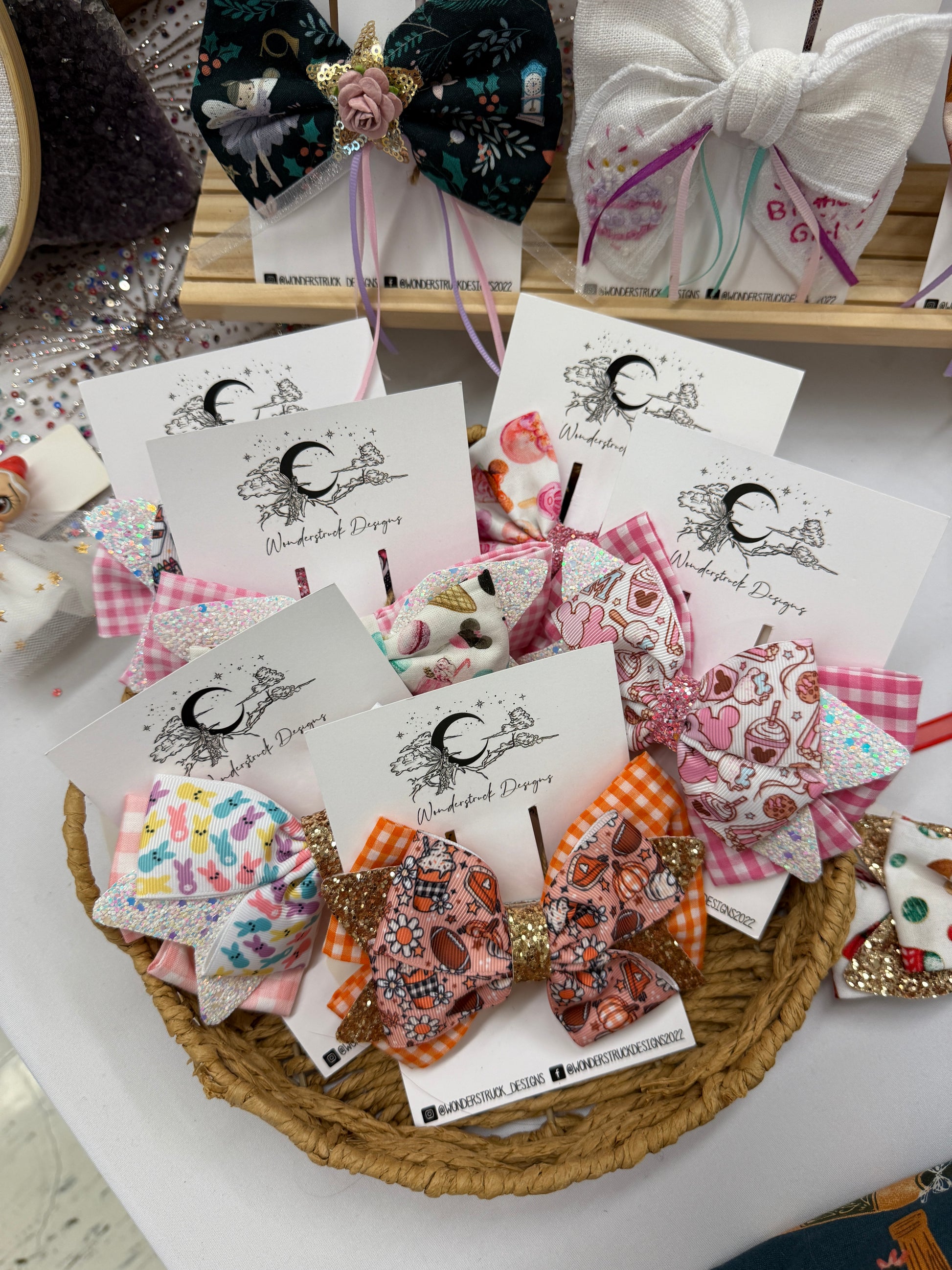 Each bow comes on a 2” alligator clip perfect for staying secure in hair all day.