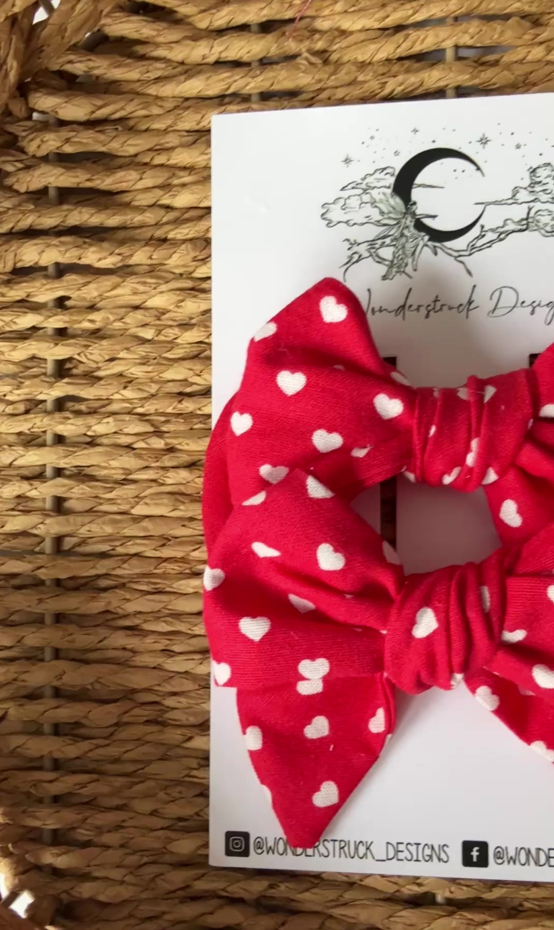 Matching bow pairs for those little piggy tails! All bow pairs measure approximately 3.5” and come on a 2” alligator clip.