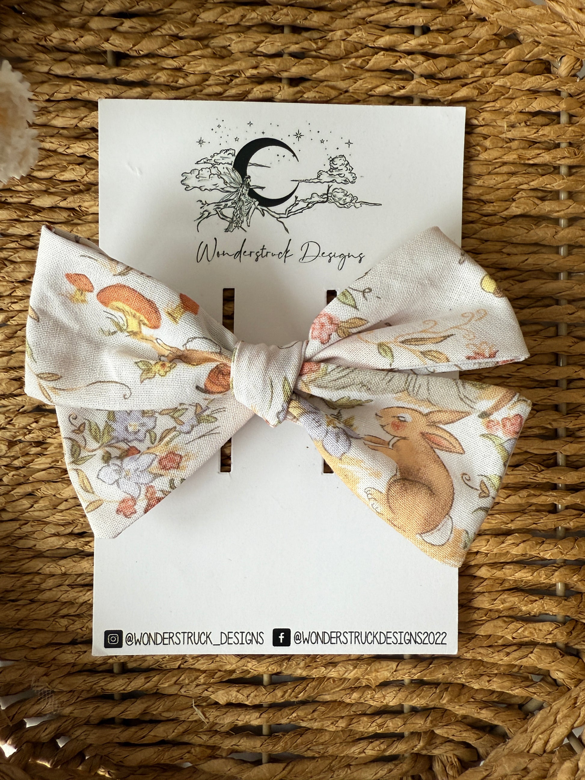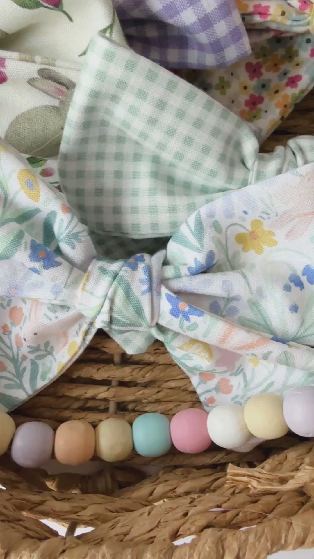 An assortment of pastel fabric options, and the choice between a 2” alligator clip for non slip grip, and a nylon headband. Nylon bands are O/S baby/ toddler.